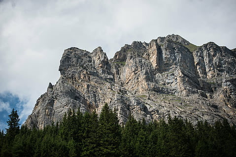 What a stunning mountain range! The rugged peaks rise majestically against the sky, showcasing nature's incredible artistry. Those earthy tones create a beautiful contrast, drawing the eye in. The lush green forest at the base adds such richness to this breathtaking scene. Truly a magnificent testament to the beauty of the natural