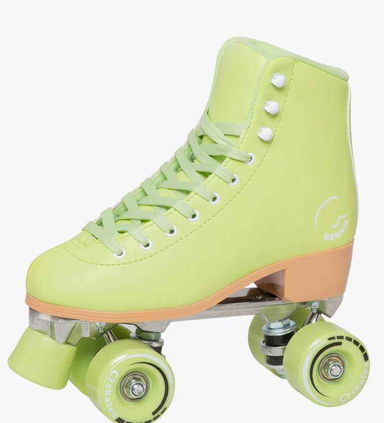 What a stunning roller skate, truly a vibrant piece of art! The light green color radiates fun and adventure. Those glossy finishes and matching laces add such a charming touch. The playful buttons elevate the design beautifully. This skate promises an amazing ride and endless joyful moments!