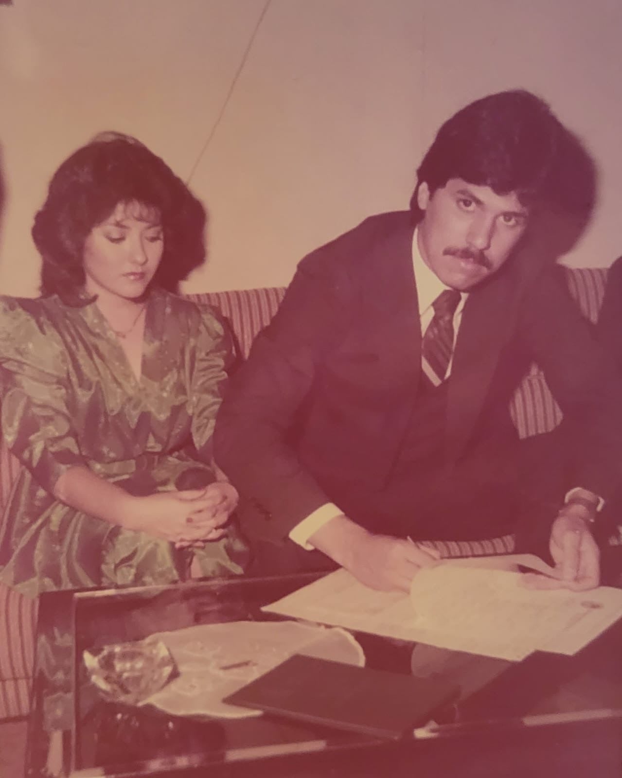What a stunning couple! The elegance of that green dress is absolutely enchanting. The vintage charm adds such warmth to the atmosphere. The classic suit perfectly complements the scene's sophistication. This moment radiates beauty and grace!