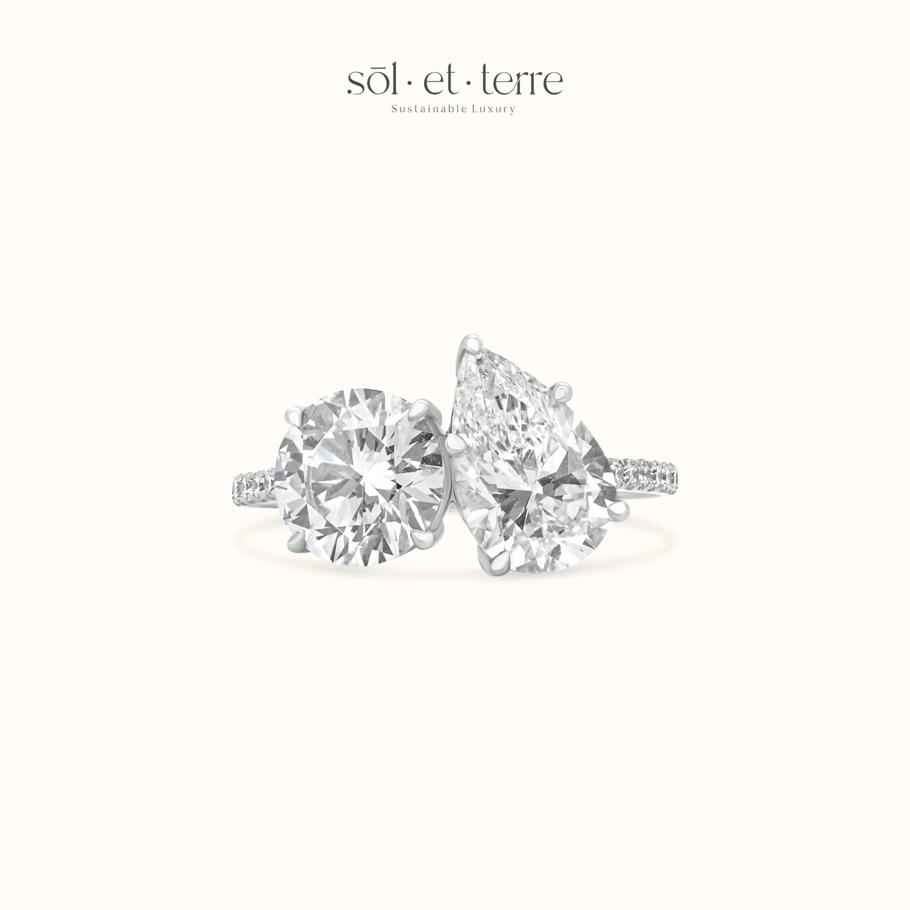 What a stunning piece, truly a work of art! The brilliant round-cut diamond sparkles with such clarity, it’s mesmerizing. The unique pear-shaped diamond adds an elegant touch that’s simply captivating. Each detail reflects exceptional craftsmanship and timeless elegance. This ring radiates beauty and luxury in every facet!