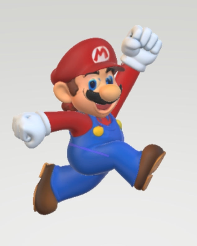 What a vibrant and lively character! That joyful expression and those expressive blue eyes radiate pure excitement. The bright red cap and striking blue overalls create such a cheerful look. Those oversized white gloves add a playful touch to the adventure. This is truly a stunning and iconic piece!