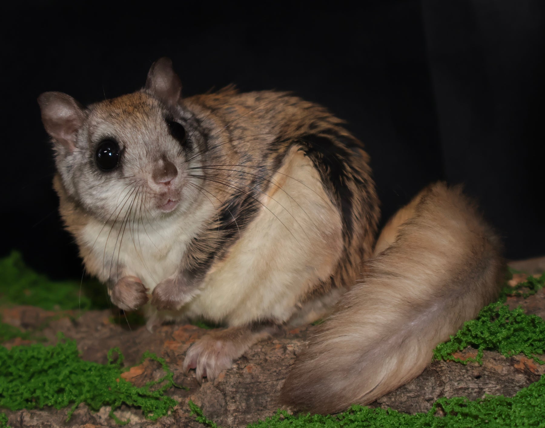What a gorgeous Northern flying squirrel! Those large, glossy black eyes are absolutely captivating. The soft blend of warm browns and creamy whites is simply stunning. Such a delightful presence, perched gracefully on that charming piece of bark. The elegance of that bushy tail adds the perfect touch to this enchanting creature