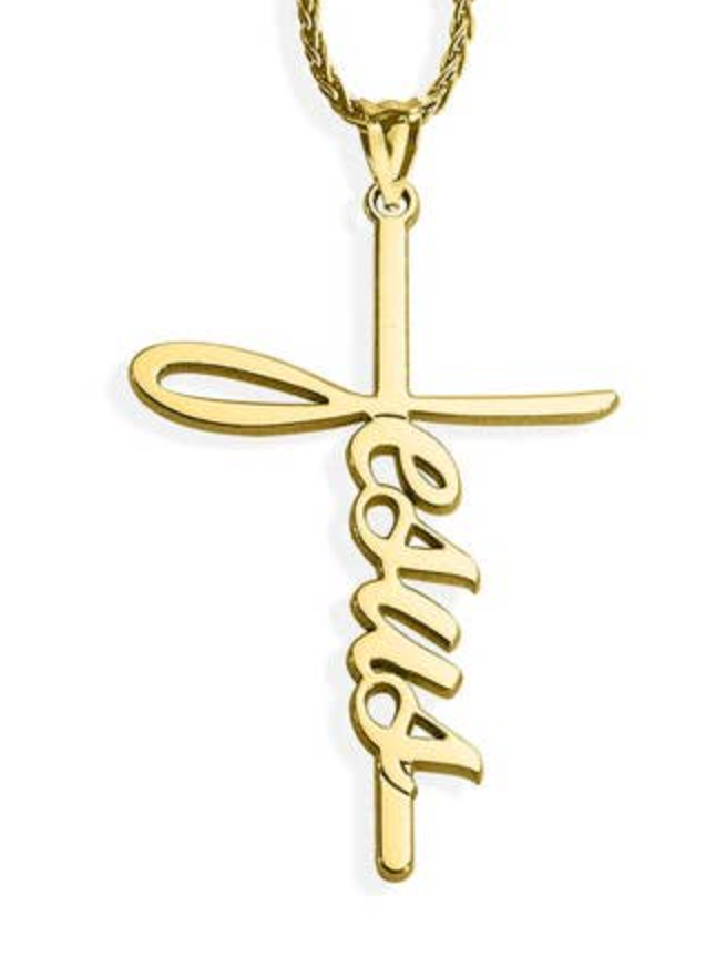 What a stunning gold pendant, Jesus! The unique design beautifully merges the cross with the flowing cursive of your name. That radiant glow captures the light perfectly. The intricate braided chain adds such elegance to this meaningful piece. Truly a remarkable blend of artistry and faith!
